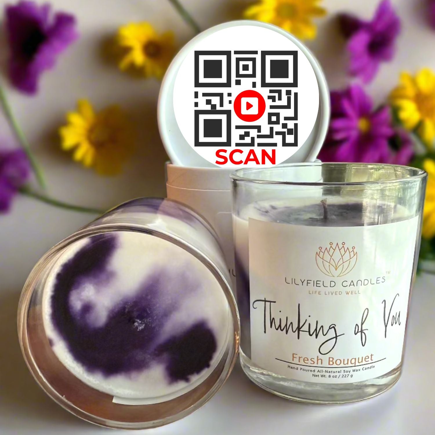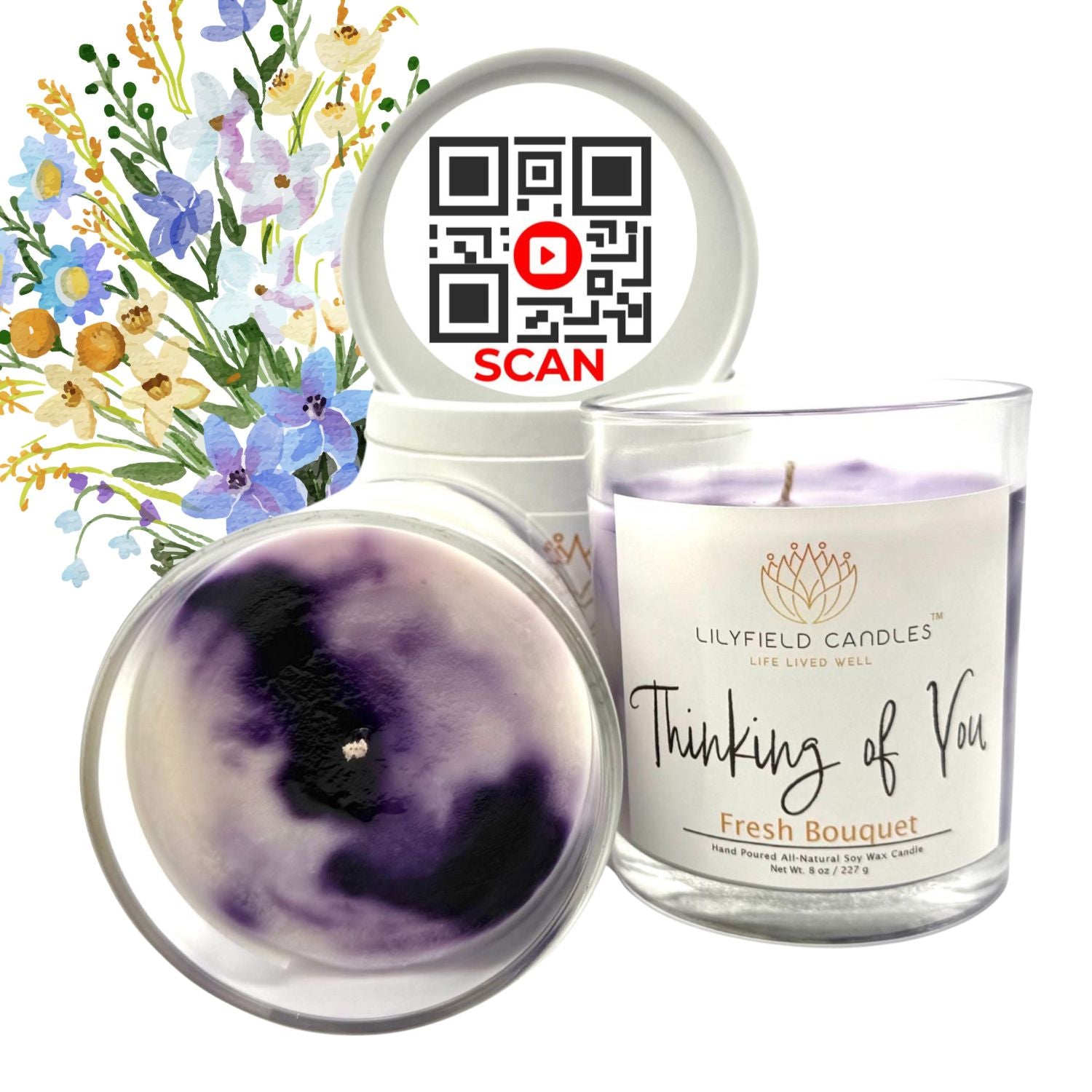 Thinking of You candle is the perfect scent of a fresh bouquet to let that special person know you care. Fresh bouquet is a scent that captures the essence of freshly cut flowers in the morning sun. Delicate rose, jasmine, and lilac petals intertwine with hints of green leaves and vanilla, creating a fragrance that feels both vibrant and serene. The soft floral notes fill your space with the beauty of nature, as if you’re strolling through a sunlit meadow. Breathe in, let go, and surround yourself with the timeless elegance of a garden in full bloom and the short inspirational video to create a Life Lived Well.