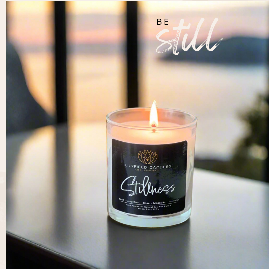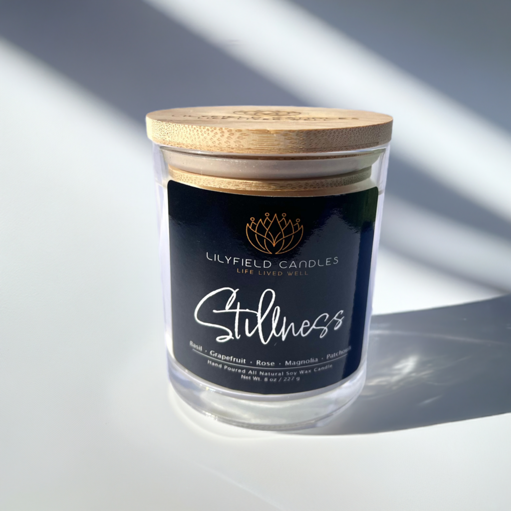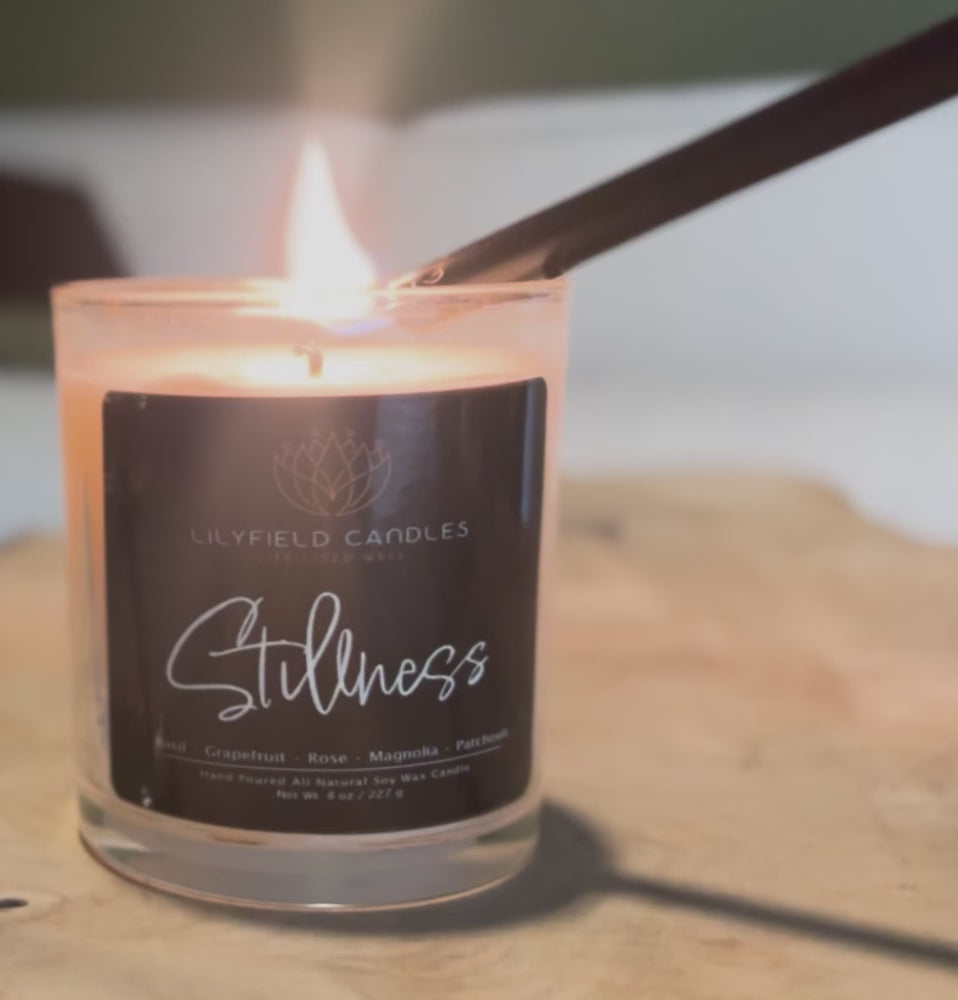 This rose scented candle is perfect to relax and unwind, featuring a gentle floral scent that brings tranquility into any room. This candle is accompanied with a QR code linked to a unique and inspirational message about stillness. This soy, non-toxic candle smells like a garden of roses and magnolia with a hint of patchouli. This gentle Stillness candle helps promote calmness and love, making it the perfect candle to create a Life Lived Well.
