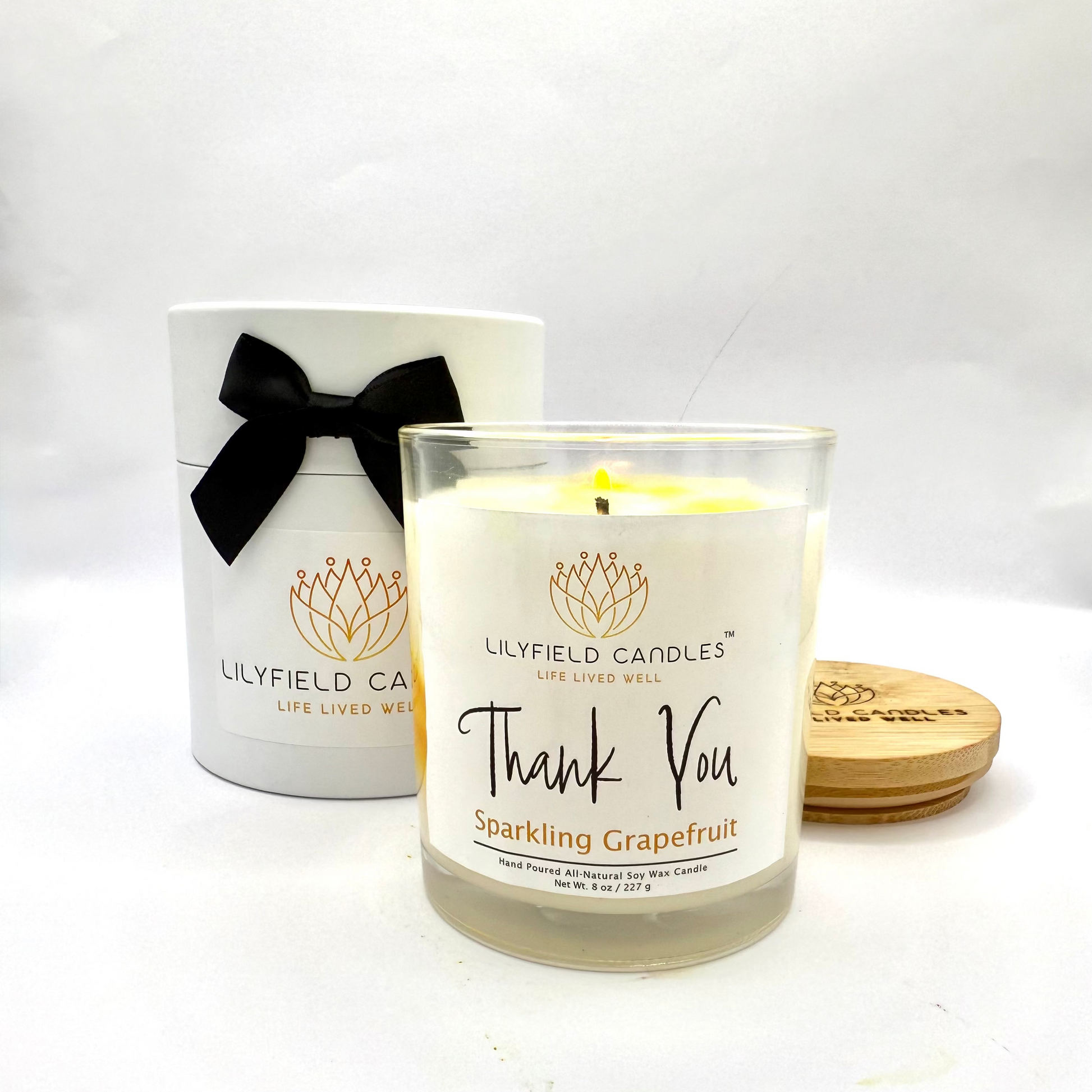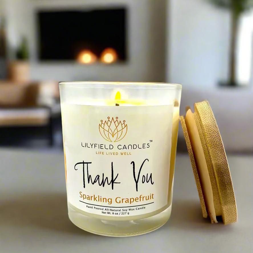 A candle that says thank you with sparkle and warmth. Let the uplifting blend of grapefruit and champagne fill the air like a bright smile of appreciation. Notes of lemon and orange peel bring a crisp, cheerful freshness, while soft hints of vanilla and ginger add a bubbly, comforting touch—like a heartfelt hug wrapped in kindness. Paired with a short inspirational video, this candle is a radiant reminder of gratitude, joy, and connection. Hand-poured with clean soy wax, this candle is a reminder that gratitude is not just felt but experienced. Light it, reflect, and let the warmth of appreciation fill the room to create a Life Lived Well!